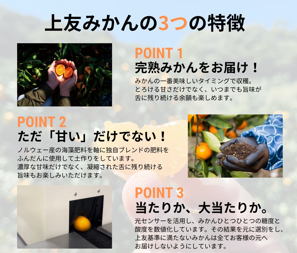 上友農園のみかんを初めてご購入される方向けのお試し量としても最適です。